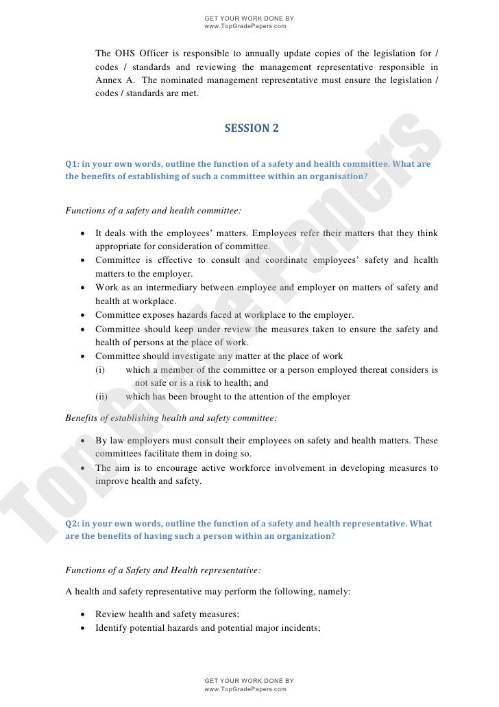 The Victorian Occupational Health and Safety Act 2004 describes the care for the health and safety of others within the workplace. This includes the provision of: a workplace that is safe to work in, report any identified Occupational Health and Safety hazard to the ... Content Retrieval